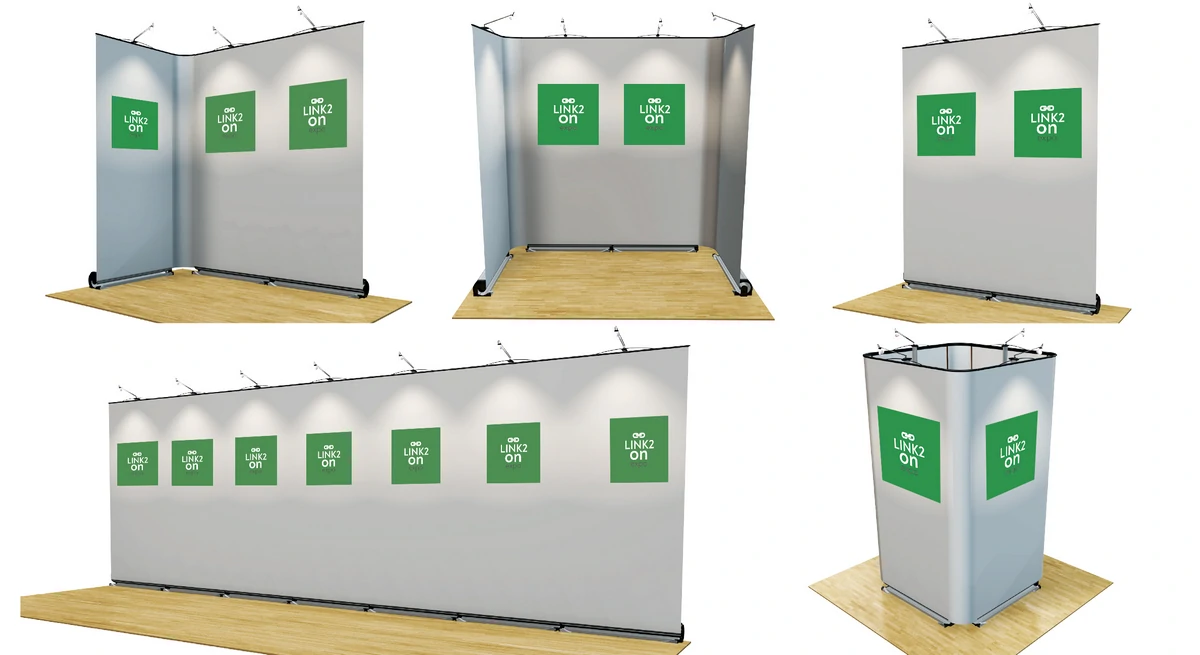 Le roll-up LINK2-ON a été conçu et fabriqué pour créer des fonds de scène et des stands d’exposition quasi instantanés, et faciles à installer.